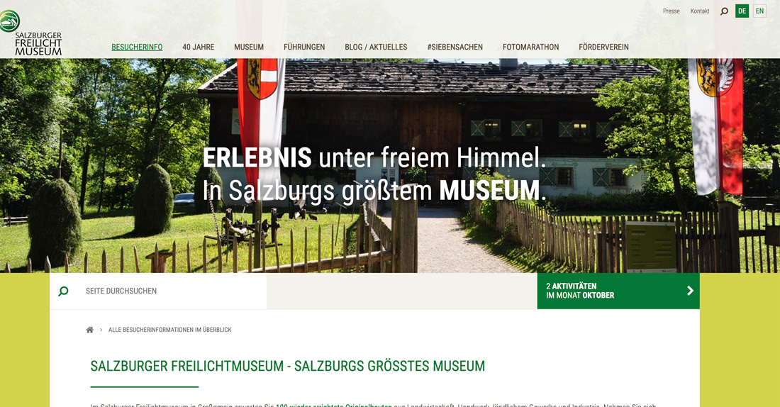 Salzburger Freilichtmuseum: Gehen Sie auf eine Zeitreise und erforschen im größten Museum Salzburgs , alte Bauernhäuser und staunen Sie über das einfache und harte Leben früherer Zeiten. SEHR EMPFEHLLENSWERT! Entfernung von unserem Ferienhaus: 36 km