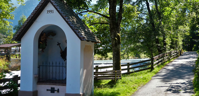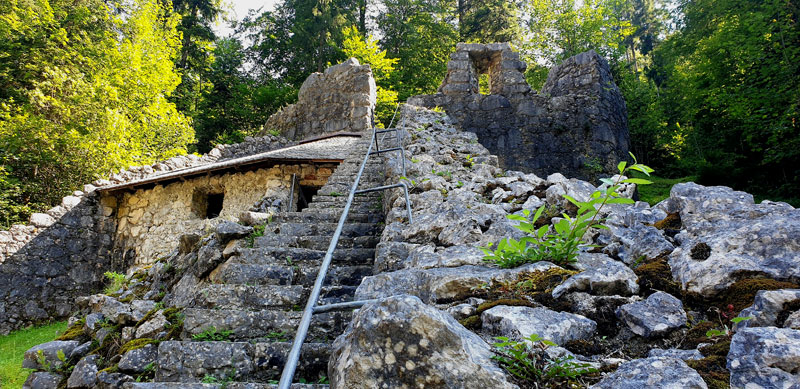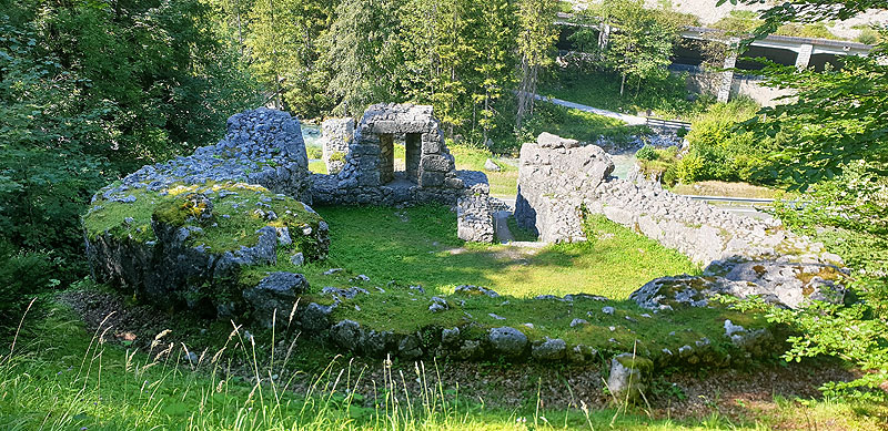 der Grenze Salzburg / Tirol und ist von Lofer am schönsten zu Fuss oder mit dem Fahrrad leicht zu erreichen. Im Ortszentrum von Lofer gehen oder fahren Sie Richtung Westen (Richtung Tirol) durch die Augustenpromenade immer dem Lofer Bach entlang. Auch mit Kindern ein netter Ausflug (Wasser, Spielplatz , Ruine, Waldgestalten …).